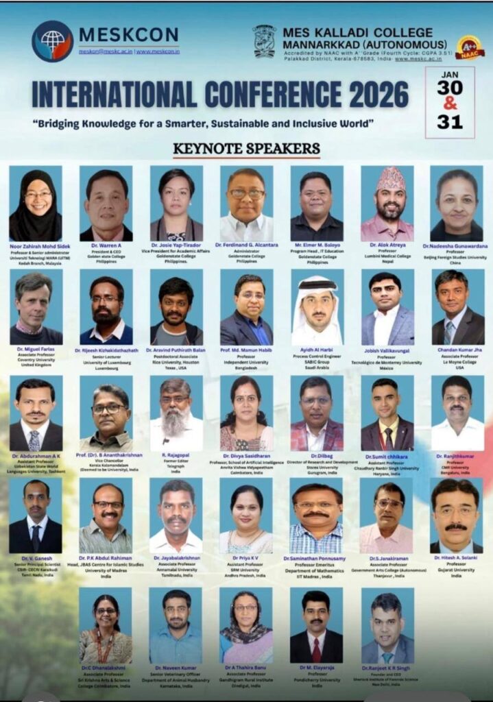 Administrators of Goldenstate College took an active and prominent role as keynote speakers during the 3rd MESKCON International Conference 2026, held on January 31, 2026, at MES Kalladi College, Palakkad, Kerala, India.