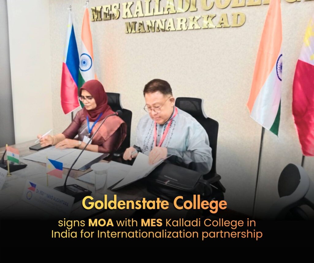 The agreement was signed on behalf of Goldenstate College by Dr. Ferdinand G. Alcantara, Ed.D., representing the College President, Dr. Warren A. Manilay, MNSA, Ph.D., Ed.D.. MES Kalladi College was represented by its Principal, Dr. Jasmen P.M.